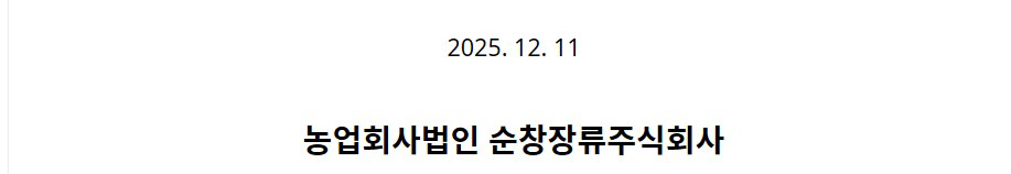 농업회사법인순창장류(주) 대표이사 채용 공고